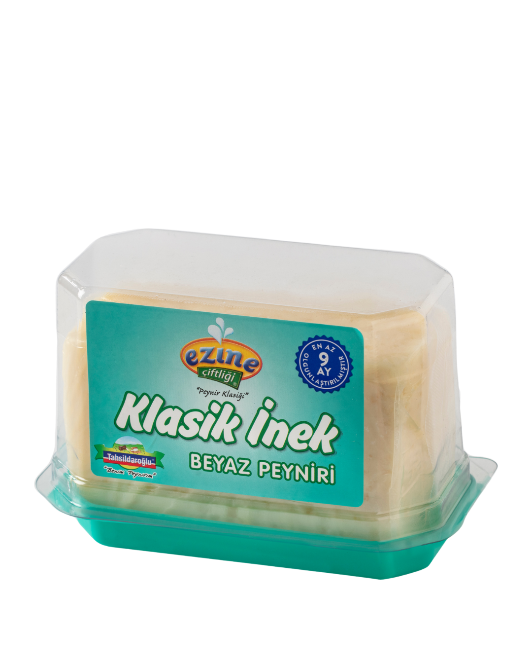 Ezine Çiftliği Klasik İnek Beyaz Peyniri, Kaz Dağları’nın doğal bitki örtüsü ile beslenen ineklerden elde edilen sütlerden üretiliyor ve sadece doğal maya ile mayalanıp olgunlaştırılıyor.